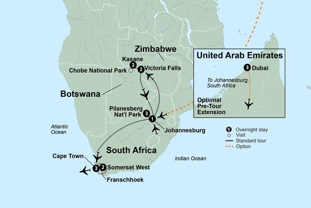 You're on your way to southern Africa, where incredible landscapes lead the way to a blend of cultural diversity, an abundance of wildlife, and a remarkable history. From urban centers to wild safaris, Africa takes you by surprise, delighting you again and again until its unique spirit claims you, heart and soul.